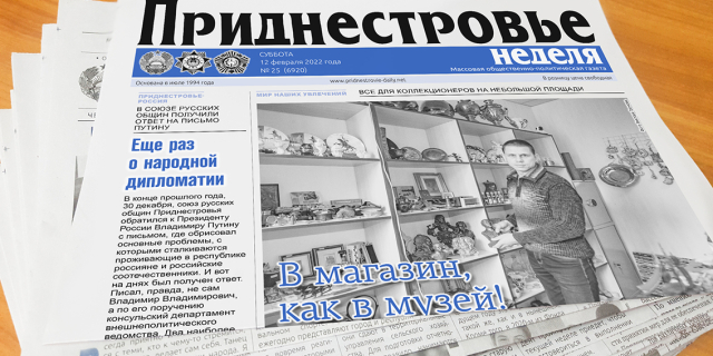 Газета «Приднестровье» стала лауреатом Международного конкурса «Город в зеркале СМИ» Издание представило материалы в номинацию «Помним и гордимся» 04 Фев., 2023, 14:00 Общество СМИ Газета