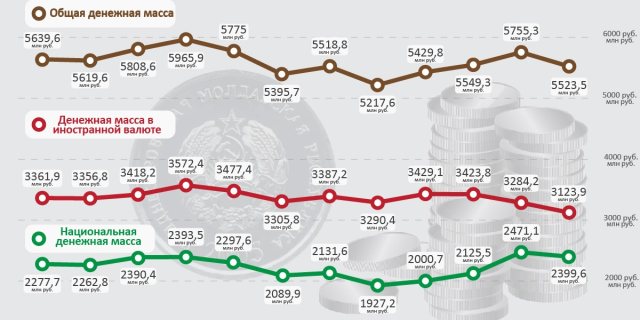 Денежная масса в Приднестровье за месяц сократилась на 4% Уменьшился как объём денежных средств в рублях ПМР, так и в иностранной валюте 13 Июл., 2016, 11:04 Инфографика Деньги Валюта