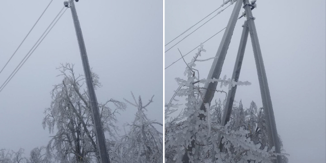 Линии электропередач сковало льдом, сейчас там работают сотрудники РЭС