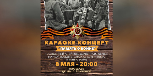 «Память о войне» - 8 мая в Бендерах состоится караоке-концерт Желающие исполнить любимые песни военных лет ещё могут подать заявку 07 Май, 2024, 11:00 Анонс караоке концерт