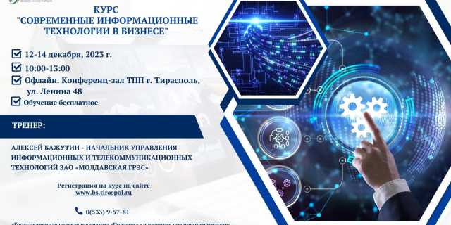 ТПП ПМР проведет конференцию, посвященную использованию в бизнесе современных информационных технологий 24 Ноя., 2023, 11:30 Анонс ТПП конференция