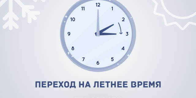 Ночью 29 марта необходимо перевести часы на час вперёд