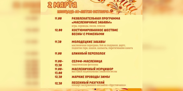 С 10:30 до 13:00 там пройдет празднование Масленицы