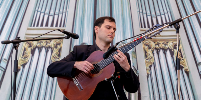 Бах и Моцарт на гитаре. Евгений Ирошников дал концерт в Тирасполе Лауреат международных конкурсов и фестивалей родом из Приднестровья выступает в столице республики уже в третий раз 02 Мар., 2019, 20:25 Культура концерт Тирасполь