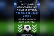 «Солнечный-2025»: стартовал набор команд на мини-футбольный турнир Подать заявку можно до 18 августа 12 Авг., 2025, 11:10 Спорт мини-футбол Бендеры