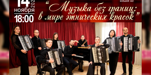14 ноября во Дворце Республики состоится концерт «Музыка без границ: в мире этнических красок» На сцене выступит ансамбль аккордеонистов «Импрессия» и коллектив «Либерти» 12 Ноя., 2025, 11:40 Культура концерт музыка