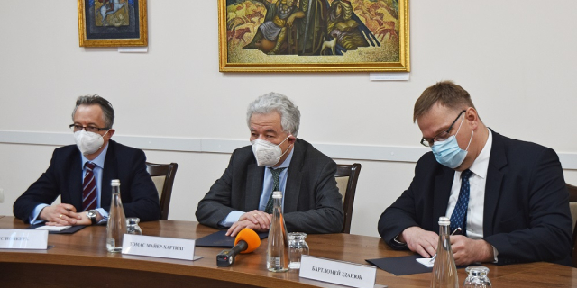 Виталий Игнатьев встретился с Томасом Майер-Хартингом Глава МИД ПМР и спецпредставитель ОБСЕ обсудили актуальные вопросы переговорного процесса 03 Фев., 2022, 17:07 Политика МИД ПМР Молдова