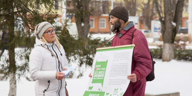 Возле ПГУ прошёл пикет к Международному дню без мяса Акцию провёл Альянс Защитников животных в Приднестровье 19 Мар., 2018, 15:38 Общество общество мясо