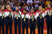 Золото завоевали гимнастка Маргарита Мамун в многоборье, женская сборная по гандболу, борец вольного стиля Абдулрашид Садулаев в весовой категории до 86 кг и Александр Лесун в современном пятиборье