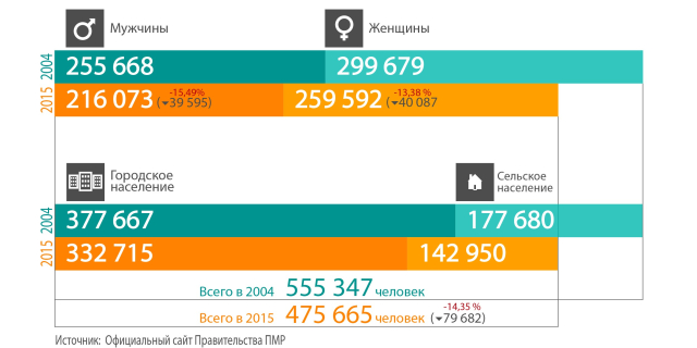 В Приднестровье постоянно проживает 475 тысяч 665 человек По сравнению с данными переписи 2004 года население Приднестровья сократилось на 79682 человек или на 14,3% 13 Май, 2016, 14:24 Общество Приднестровье перепись