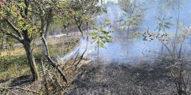 Искры от болгарки, упавшие на сухую траву, привели к пожару площадью полтора гектара