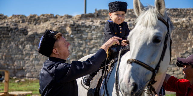 Посажение на коня. В Бендерской крепости провели обряд инициации казачат-черноморцев Давнюю казачью традицию в Приднестровье проводят на Покрова Пресвятой Богородицы 14 Окт., 2020, 17:03 Общество Бендерская крепость казаки
