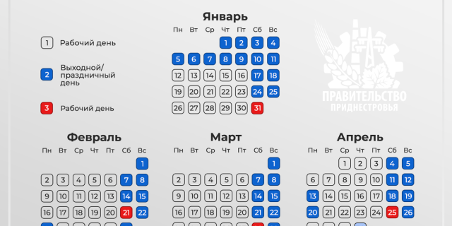 Новогодние выходные приднестровцев в 2026 году продлятся 11 дней На заседании Правительства принято решение о переносе четырёх рабочих дней в начале января на субботы других месяцев 03 Ноя., 2025, 15:48 Общество Правительство ПМР Выходные